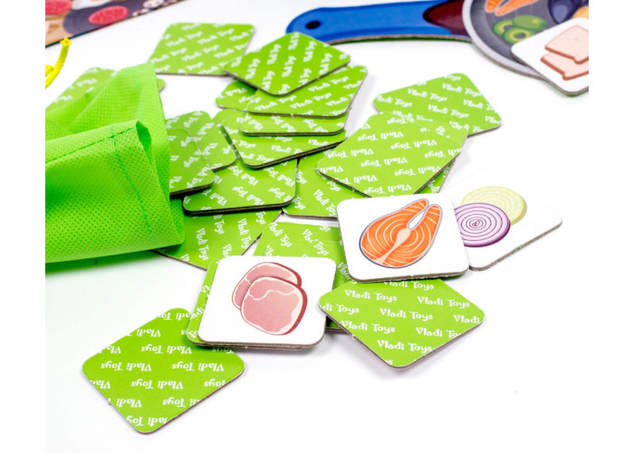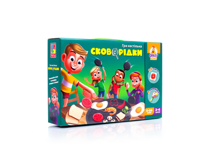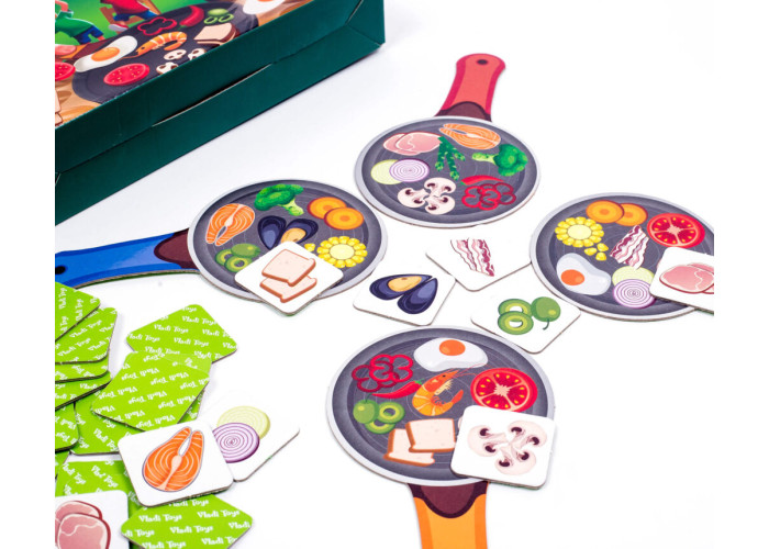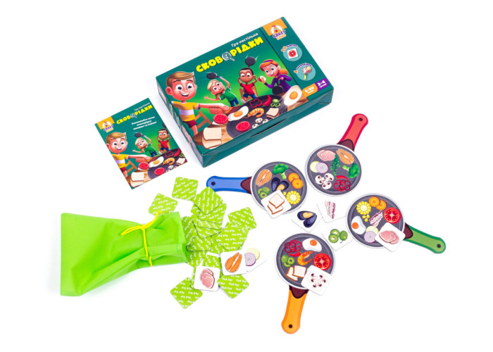 Комплектація: 4 сковорідки, 30 карток, мішечок із тканини, інструкція.