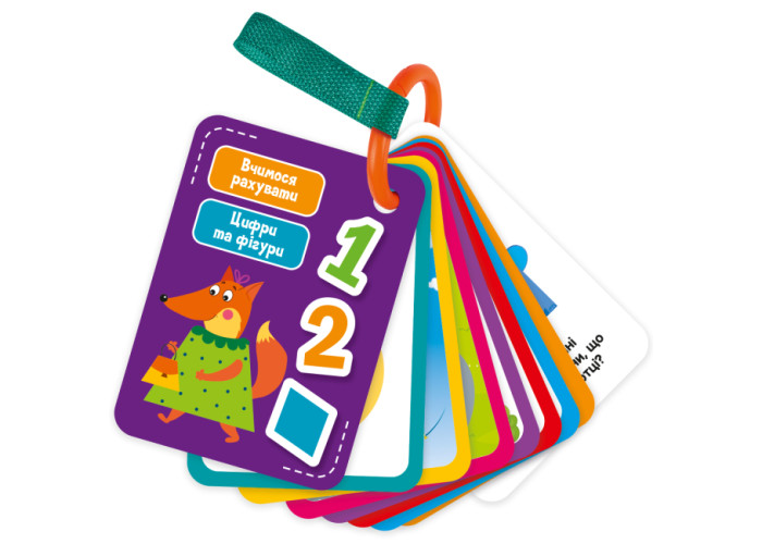 Вивчаємо цифри та фігури, виконуємо цікаві завдання, граємо будь-де і будь-коли! Адже картки на ремені можна взяти із собою в подорож чи на прогулянку.