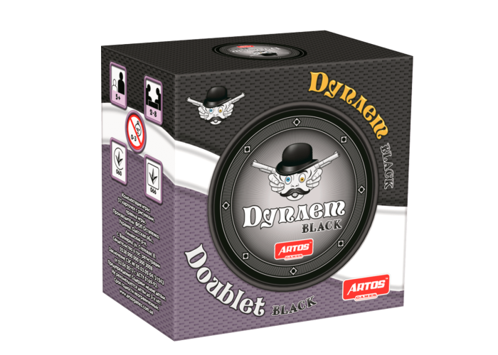 «ДУПЛЕТ Black» - весела динамічна настільна гра, розвиває зорове сприйняття, увагу і концентрацію. Ця гра чудово підійде як дітям, так і дорослим. Для гри використовується колода з 57 круглих карток з безліччю зображень. Кожна картка унікальна. На ній розміщені 8 картинок, але тільки одна з них збігається із зображенням на будь-який інший картці з колоди.