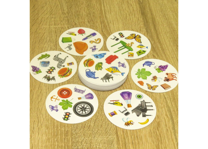 МЕТА ГРИ. Ігровий процес побудований на пошуку збігів. Гравець повинен першим знайти зображення, яке збігається в обох картках. Далі йому необхідно озвучити даний файл, а потім взяти або скинути відповідну картку (в залежності від варіанту гри).