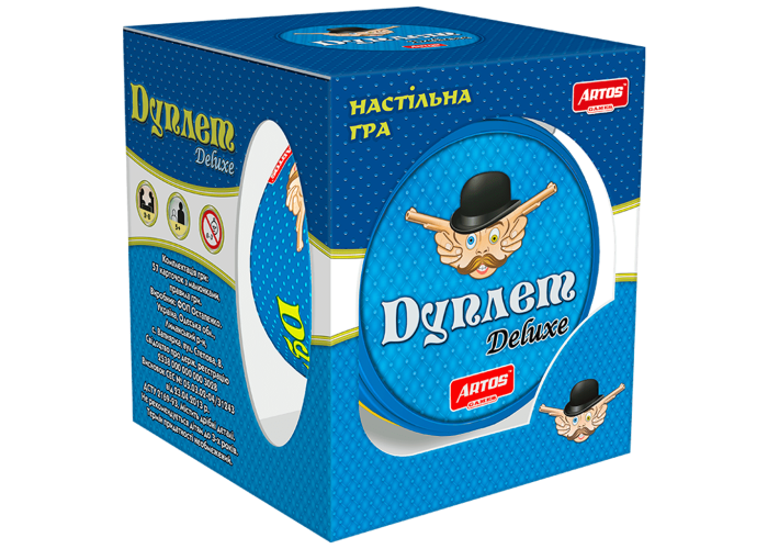 «ДУПЛЕТ Deluxe» - весела динамічна настільна гра, розвиває зорове сприйняття, увагу і концентрацію. Ця гра чудово підійде як дітям, так і дорослим. Для гри використовується колода з 57 круглих карток з безліччю зображень. Кожна картка унікальна. На ній розміщені 8 картинок, але тільки одна з них збігається із зображенням на будь-який інший картці з колоди.
