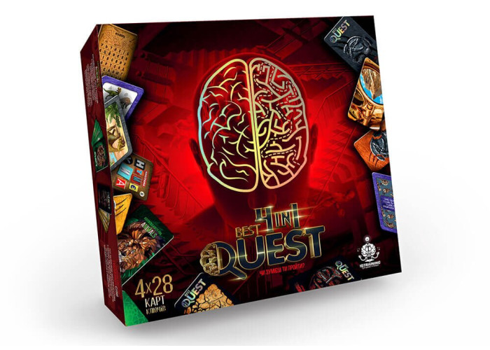 Настільна гра Квест 4 in 1 BEST QUEST - це 4 абсолютно різних, цікавих квесту в одній коробці, кращий вибір для любителів загадок і головоломок!