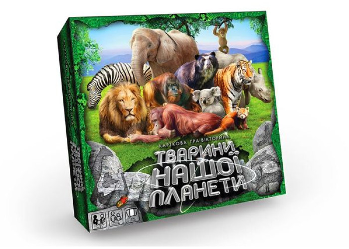 Тварини Нашої Планети – це чудова енциклопедична гра у вигляді вікторини. У цій грі Ви дізнаєтесь багато нових та цікавих фактів про різні види тварин всього світу. Граючи в настільну гру "Тварини нашої планети", учасники, розчиняючись у веселому азарті, отримають назавжди безцінний багаж знань у галузі зоології та географії.