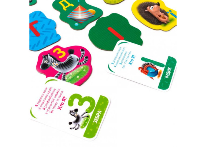 Вміти читати - чудово! Вивчаємо літери разом з цікавою грою! Набір містить великі фішки з літерами і картки з цікавими фактами. На кожній картці зображення милих персонажів, з якими вчитися буде ще цікавіше! Завдяки набору малюк з легкістю запам'ятає літери, навчиться складати з них слова, а також потренує пам'ять, мову і дрібну моторику.