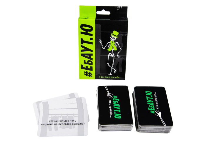 «Ебаут.Ю» – гра для компанії від 3 до 12 гравців, які полюбляють цікаві факти одне про одного. У грі 110 карток з різними твердженнями, які комусь можуть здатися смішними, а комусь дивними. Оптимальний вік гравців – від 15 років, адже деякі факти на картках дійсно гостренькі. Кожному гравцеві доведеться вирішувати, кому з супротивників підходить той чи інший факт та віддавати відповідні картки. Мета гри «Ебаут.Ю» Strateg (30520) – отримати якомога менше карток.
