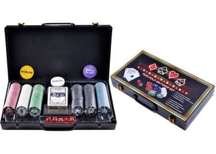 Покерний набір на 300 фішок підійде для відпочинку, яке стане не тільки цікавим, але й корисним для людей з восьми років і вище. До набору входять карти для покера, фішки для покеру, кістки та спеціальна фішка дилера. А зручний кейс дозволяє протягом тривалого часу зберігати вміст і сприяє зручності під час перенесення настільної гри.