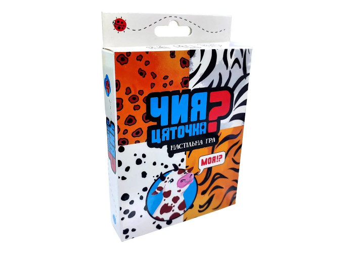 «Чиє цятка?» - Сімейна гра з яскравими малюнками на картах. Правила дуже прості, адже гра створена для дітей віком від 4 років. Гравці отримують в руки по 6 карток з тваринами, а картки з візерунками добре перемішують і кладуть колоду посеред столу. Тепер гравці по черзі відкривають із цієї колоди карти та порівнюють їх із картками в руках. Той, хто першим викладе з рук правильно підібрану картку із твариною, заробляє бал. І наприкінці гри гравець із найбільшою кількістю балів перемагає. Ця гра на уважність буде цікавою і дітям, і їхнім батькам. Веселий ігровий процес допоможе проводити час весело, при цьому тренуючи швидкість реакції, спостережливість та пам'ять.