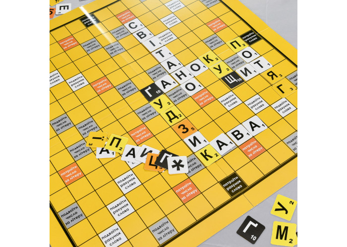 Гравці по черзі складають слова з літер на ігровому полі, заробляючи очки. Чим довше слово й вдаліше розташування, тим більше очок. Грайте до останньої плитки та дізнайтеся, у кого найбільший словниковий запас!