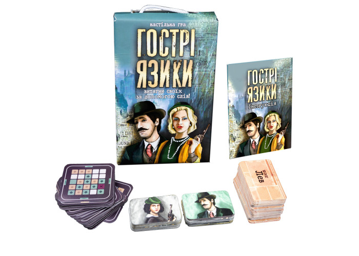 «Гострі язики» - командна словесна гра для любителів шпигунського жанру. Вам належить витягнути товаришів встановлюючи контакт між учасниками своєї команди. Як це відбувається? На початку гри розкладається сітка з слів, капітани отримують до неї ключ (тільки вони бачать слова, що належать кожній з команд). Потім починається найцікавіше - капітану потрібно дати наводку своїм гравцям, щоб вони розгадали тільки свої слова, для цього він говорить асоціацію (одне слово) і цифру, яка позначає скільки слів з сітки підходять під асоціацію. Вгадуючи, гравці команди можуть наштовхнутися на своє слово або суперників, а можуть потрапити на констебля і тоді гра закінчується. Перемагає команда, вгадали всі слова з сітки. Капітани повинні вибирати собі в команду тих, з ким вони точно на одній хвилі. Не можна відволікатися, адже попередня асоціація може допомогти розгадати нові слова. Дизайн гри якнайкраще відповідає шпигунської теми, тому поринете з головою в гру і забудьте про реальність на якусь мить. «Гострі мови» - це справжнє тренування проникливості, гра вчить бачити людей наскрізь і розуміти навіть самі найменші натяки і підказки.