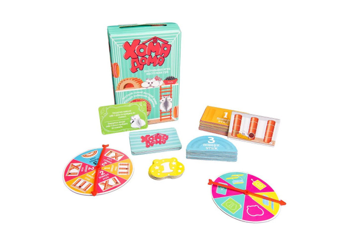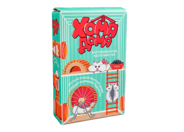 Гра «Хома вдома» створена для дітей віком від 4 років, але може бути цікавою для дорослих. Гравцям необхідно збирати карти з різними елементами для триповерхових будиночків, щоб у кожному був щонайменше один хом'ячок. І той, хто збудує більше будинків до кінця гри – переможець. Але у грі також є спеціальні картки з веселими завданнями, які зроблять процес ще цікавішим. «Хома вдома» допоможе розвеселитися компанії до 4 гравців та сприятиме розвитку у дітей уяви та фантазії.