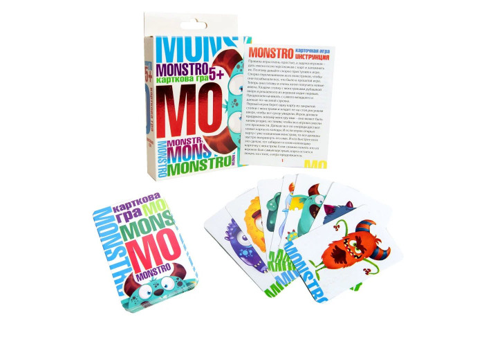Картка «MONSTRO» призначена для дитячих розваг. Завдання гравців вигадувати імена монстрам, які з'являтимуться з ігрової колоди. Але одна справа імена вигадати, і зовсім інша – запам'ятати їх. Коли у когось із монстрів з'явиться ім'я, зустрічаючи його знову треба це ім'я називати, а якщо з колоди відкриють безіменного монстра, тоді ім'я треба вигадати. Фантазія гравців нічим не обмежується, називайте монстрів як забажаєте. Той, хто найкраще впорається з поставленим завданням, стане переможцем. Компактна гра не вимагає багато ігрового простору і знадобиться в дорозі, на прогулянці або відпочинку.