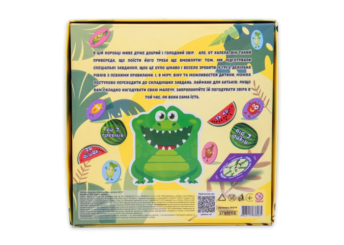 Настільна гра для дітей "Погодуй мене - Крокодил" від компанії Strateg дозволяє дітям розвивати координацію та кмітливість, грати та навчатися разом з друзями. Коробка розроблена таким чином, що одна з її частин - це спеціальна тваринка, яку дитина повинна годувати роблячи певні дії, наприклад, стрибаючи або сміючись.