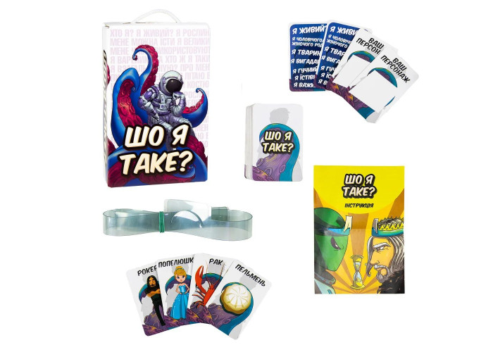 Одягай обруч, розташовуй картку з малюнком і починай відгадувати слово. Твої суперники можуть відповідати лише «так» чи «ні». Кожне відгадане слово наближає тебе до перемоги у цій настільній грі!