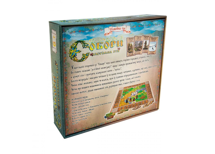 У комплекті є все необхідне – ігрове поле, картки із завданнями, жетони з ресурсами та будівлями. Мета гри – будівництво величного Собору та отримання максимальної кількості очок за виконані завдання. Для більшої захопливості та достовірності гравець зможе розфарбувати дерев'яні фішки-фігурки фарбами, які є в комплекті, зобразивши персонажів гри. Грати можна компанією від 2 до 4 осіб, здійснюючи по черзі ходи відповідно до правил, долаючи перешкоди та виконуючи завдання. Правила прості, але гра захопить учасників із першої партії.