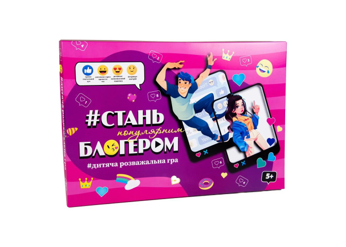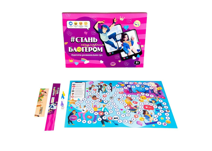 Це настільна гра для сучасних дітей. Вона особливо може сподобатися тим, хто цікавиться темою блогерства та соціальних мереж. У грі крок за кроком дитині необхідно виконувати різні завдання, щоб швидше досягти популярності – перемогти у грі. Поставте фішки на «Старт», кидайте кубик і грайте. Така гра-бродилка сприяє розвитку здорового почуття конкуренції та вміння досягати поставленої мети.