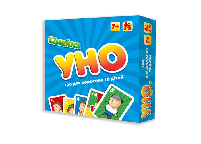Гра-набір з двох колод карток УНО "Сімейна 2 в 1" (укр), один з варіантів популярної гри "Уно". Мета гри - раніше всіх позбутися всіх наявних на руках карт, скидаючи їх у загальну колоду, дотримуючись певних правил. Настільна гра призначена для будь-якого віку, об'єднає в веселу компанію будь-який колектив. Учасники гри всіляко повинні передбачити хід, підкидати карти "Пропуск ходу", "Візьми дві". Найголовніше правило - не забудь крикнути "Уно!", Що в перекладі з іспанської та італійської "один", в момент коли в руках гравця тільки одна картка.