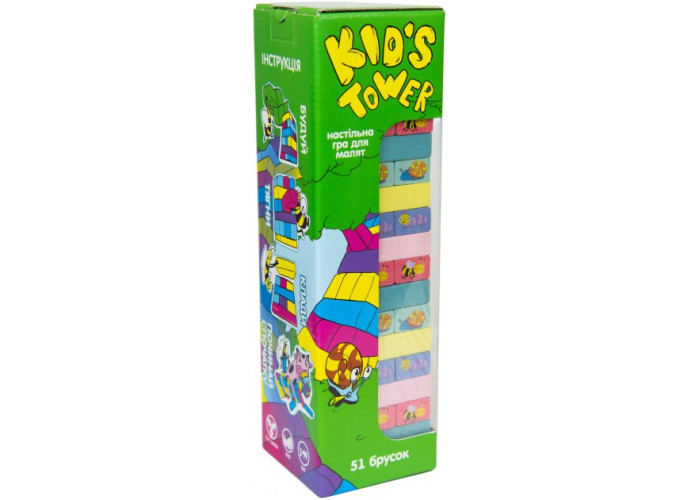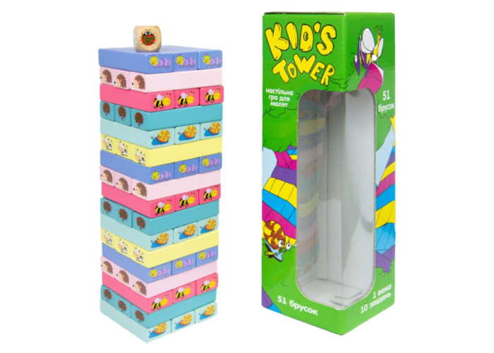 Гра «Kid s Tower» (30863) створена на основі класичної «вежі», в якій гравцям потрібно по черзі діставати блоки з конструкції таким чином, щоб вона не зруйнувалася. Але дизайн Kid s Tower спеціально продуманий так, щоб діткам було дуже цікаво грати. На різнокольорових блоках зображені звірятка, а в комплекті є спеціальний гральний кубик, щоб ускладнити гру, коли діти приймуть діставати «цеглинки» з вежі. Розташовувати блоки можна довільно, а за допомогою кубика вирішувати які діставати, а які не можна чіпати. Тим, хто програв - вважається гравець, у якого не вийшло акуратно витягнути блок, і вежа впала.