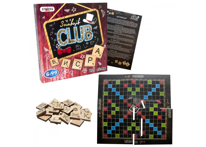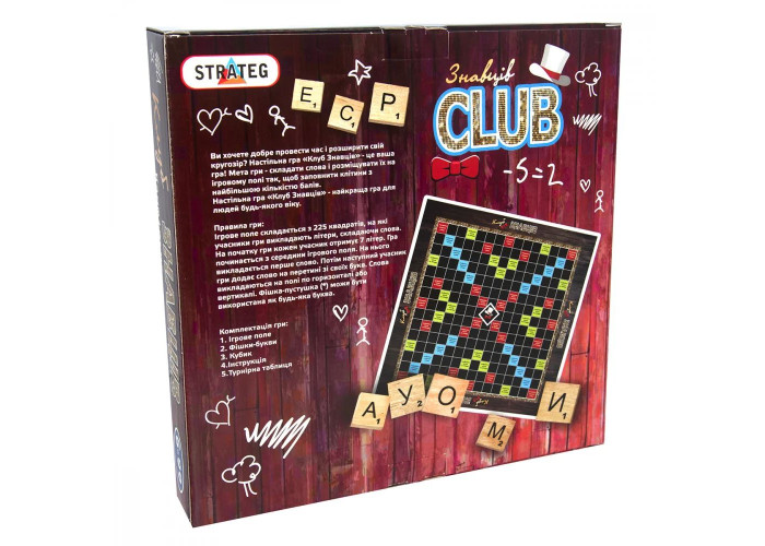 Весела настільна гра "Club Знавців" від Strateg – це чудовий спосіб разом розважитися та дізнатися нові слова! Її суть полягає у складанні слів та розміщення карток на ігровому полі під потрібними номерами. Кожну літеру потрібно розміщувати на клітинці ігрового поля та отримувати бали. Загалом у грі 110 букв.