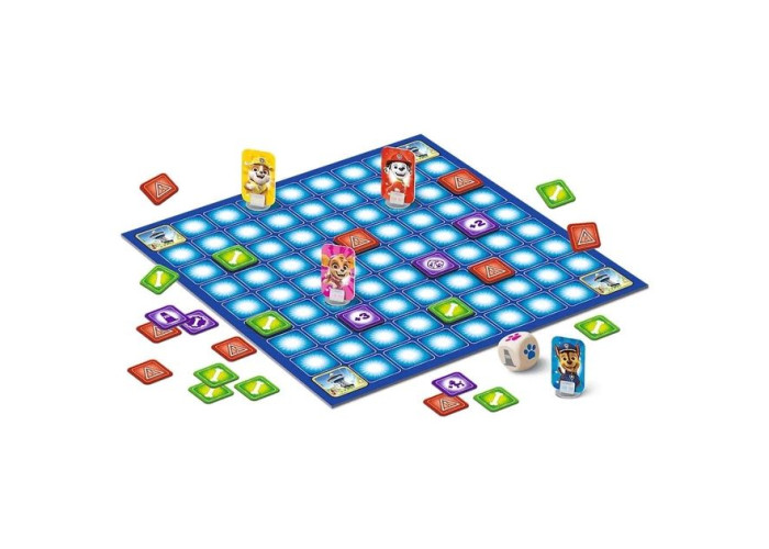 Беріть участь у гонитві за частуваннями! Вирушайте в подорож за смакотами разом із персонажами мультфільму "Щенячий патруль". Переживіть дивовижну пригоду в компанії персонажів серіалу "Щанячий патруль". Завдяки спеціальному кубику з лапками можна грати за 4 різні персонажі, які шукають смачні ласощі. Остерігайтеся перешкод, однак! Вони можуть ефективно ускладнити виконання завдання.