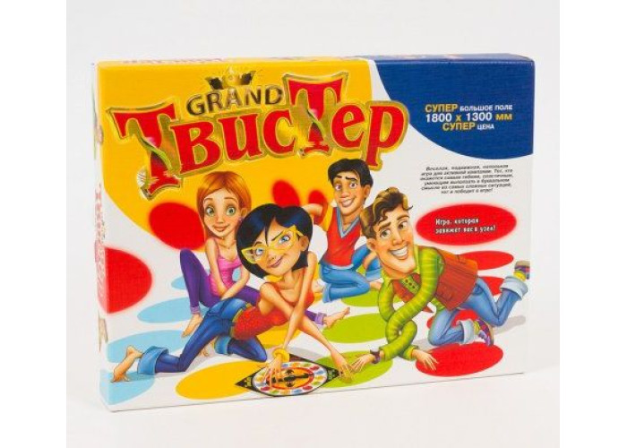 Твістер (twister) – гра, відома у всьому світі. З її допомогою ви зможете поєднати приємне з корисним: вправлятися в гнучкості, спритності, вмінні зберігати рівновагу та стійкість за будь-яких обставин, а також весело та цікаво провести час у колі своїх друзів. Крім того, кількість граючих у цій грі не обмежена! Супер велике поле: 1800х1300 мм.