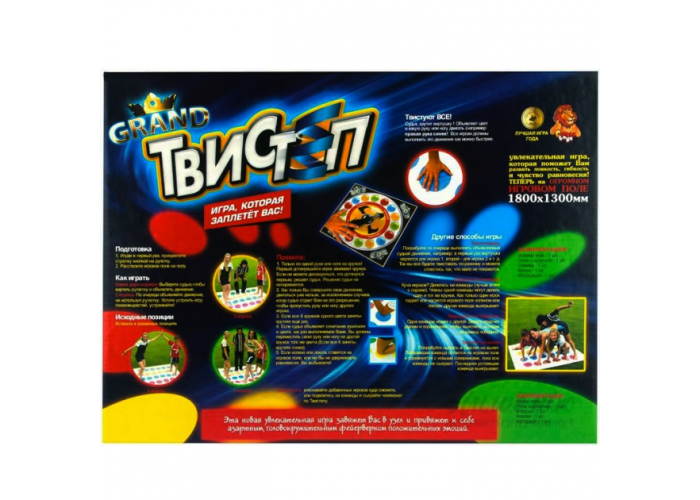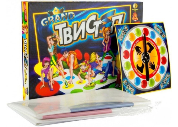 Напольна гра Гранд Твістер Твістеп - весела гра, яка принесе задоволення всій компанії. За правилами гри гравці крутять рулетку яка вказує яку частину тіла і на якій гурток поставити. У грі заборонено торкатися поля колінами, ліктями.