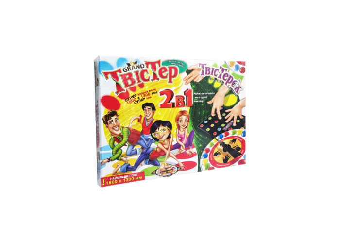 Комплектація: ігрове поле Гранд Твістер- 1 шт, рулетка - 1 шт, ігрове поле Твістерок - 1шт, стрілка - 2 шт, кнопка - 2 шт, інструкція - 1 шт.