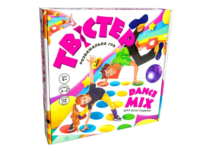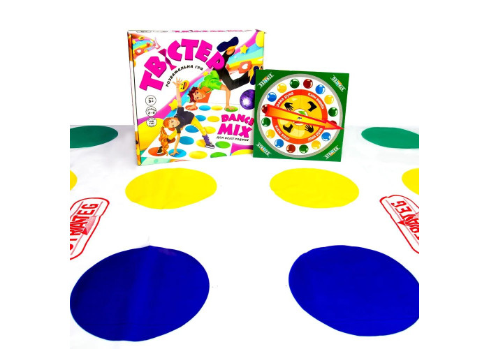 "Твістер dance mix" - рухлива гра для дітей та дорослих. Увімкніть музику, крутіть рулетку і грайте скільки захочете. Правила дуже прості – виграє той, хто зміг утримати рівновагу довше за інших. Така гра не тільки розвеселить малюків, а й допоможе їм навчитися взаємодіяти з однолітками.