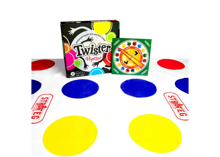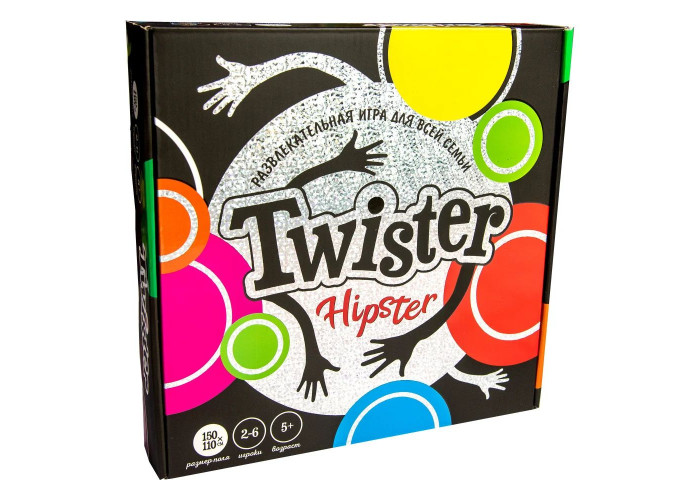 Twister-hipster – це цікавий та активний спосіб провести час разом зі своєю сім'єю чи друзями. Розмір поля 150х110 см, тому у грі можуть брати участь до 6 гравців. Правила прості – гравцям необхідно переставляти свої руки та ноги на килимку, орієнтуючись на кольорові кола. Той, хто втримає рівновагу найдовше і не торкнеться поля ліктем чи коліном, переможець.