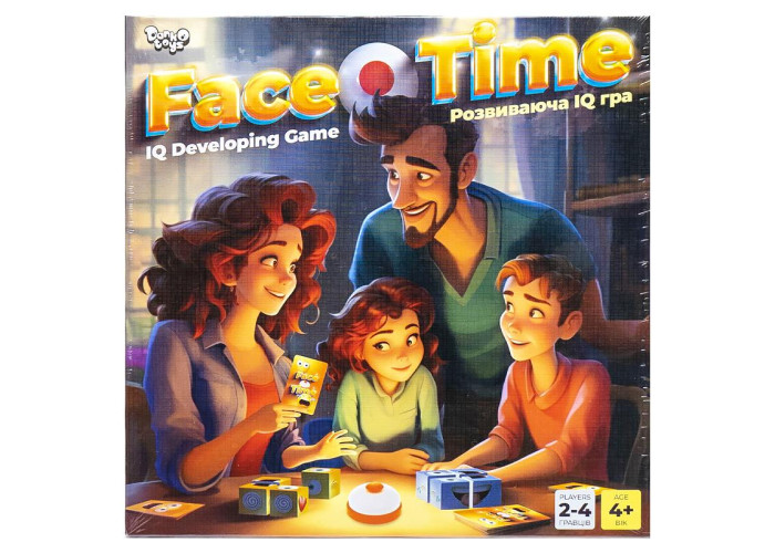 "Face Time" - це дуже весела, галаслива гра для всієї родини. Нескладна, але дуже цікава настільна гра захопить із першої секунди. Головне завдання у грі – зібрати обличчя на кубиках відповідно до завдання на картці та якнайшвидше. Тільки важливо не переплутати вираз чи послідовність. Як тільки обличчя зібране, скоріше натискай на дзвіночок.