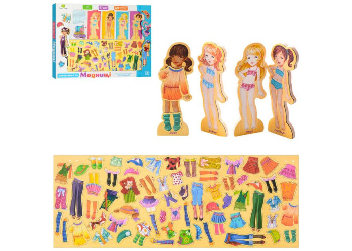 Ігровий набір ідеально підійде для дівчаток старше трьох років. Він складається з чотирьох фігурок ляльок і великої кількості одягу, який можна вдягати на ляльку і створювати красиві і стильні образи. Фігурки на магнітах, тому вам потрібно просто прикласти вподобану річ до ляльки і вона буде добре триматися і не спадати. Ця гра буде розвивати у вашої дитини уяву, почуття форми і просторового сприйняття, дрібну моторику. Так само допоможе дівчинці сформувати почуття смаку і стилю.