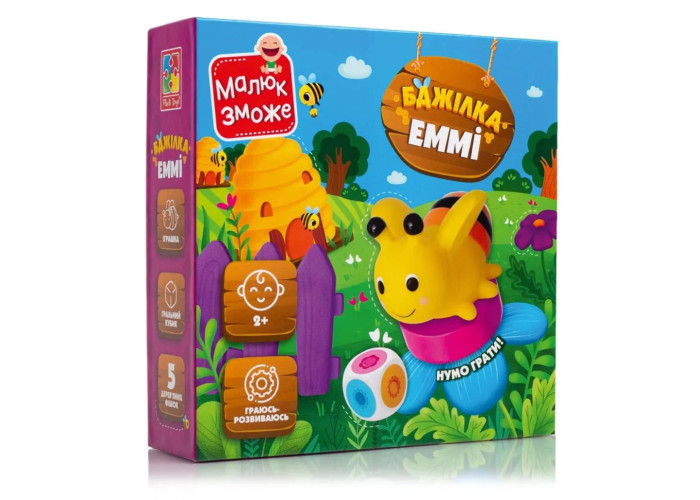 Добра бджілка Еммі допоможе всім, хто цього потребує. Однак іноді їй самій потрібна допомога. Сонце вже заходить за обрій, а Еммі треба повернутися назад у вулик. Без вас їй точно не вдасться цього зробити. Нумо, пориньте в казкову історію до якої захочеться повернутися знову! Комплектація: іграшка бджілка, гральне поле, 5 дерев'яних фішок, гральний кубик, правила гри. Мова: українська. Вік: 2-3 роки.