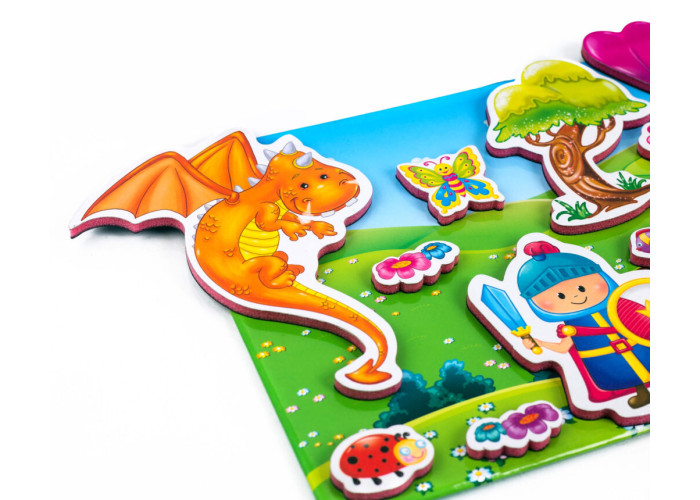Розставляйте об’ємні магніти на спеціальній дошці, придумуйте власний сюжет і створюйте яскраві та оригінальні образи!
