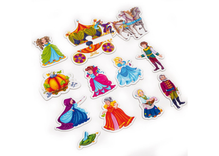 Влаштуйте справжню театральну постанову у себе вдома! Сюжет улюбленої казки «Попелюшка» та магніти з персонажами — у наборі.