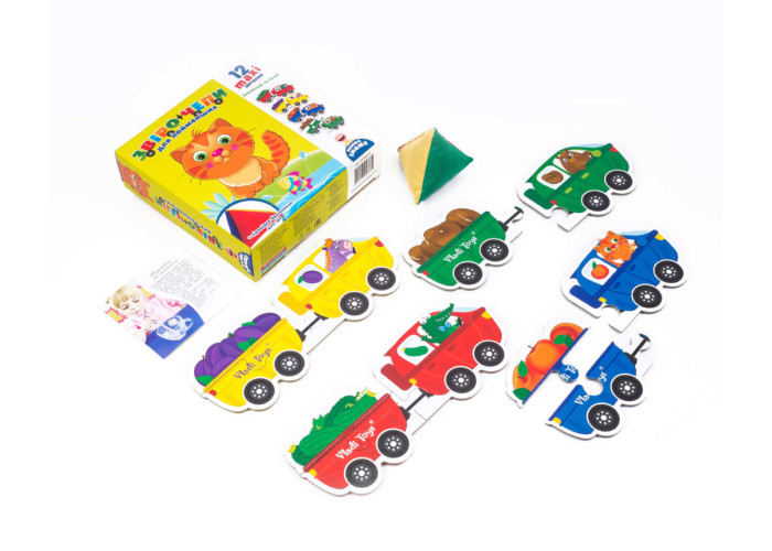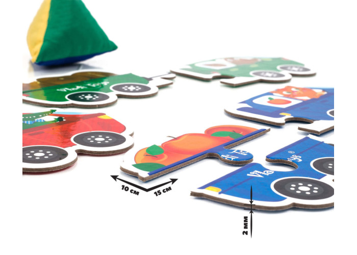 Дитина бере м’яку пірамідку, і гра починається. Обираємо колір, кріпимо відповідний звірочеп. Водій підкаже, чим його завантажити. Тепер можна вирушати в дорогу.