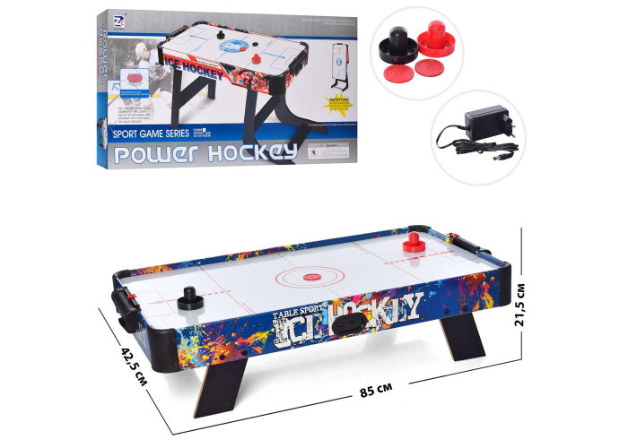 Комплектація: ігрове поле на ніжках, шайба, 2 ключки, електромотор 220V, блок живлення.