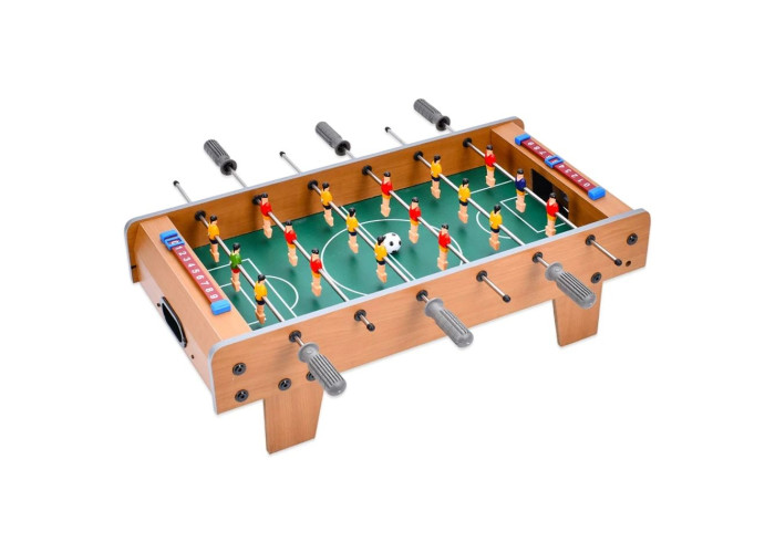 Стіл виконаний з дерева та оснащений 6 рухомими штангами. Він призначений для двох учасників, які зможуть керувати своїми командами з 9 гравців. Ваша мета, як і у великому футболі, не дати супротивникові забити м'яч у ваші ворота. Повертаючи та рухаючи штанги, ви зможете контролювати своїх гравців, передаючи їм паси та розігруючи захоплюючі комбінації. Це як міні-турнір із футболу з максимальною реалістичністю.