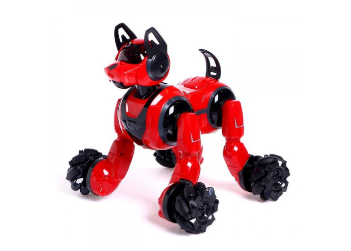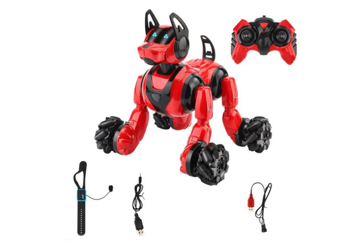 - Робот-собака виготовлений з міцного нетоксичного глянсового пластику, який стійкий до деформації і прослужить дитині тривалий час. Собакою можна керувати як за допомогою пульта, так і за допомогою браслета. Працює від акумулятора. Заряджання здійснюється за допомогою USB-проводу.