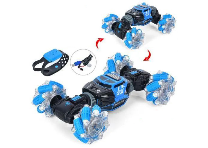 Трюкова машинка має потужні роликові колеса, які з легкістю долають будь-які перешкоди як у приміщенні, так і на вулиці. Повнопривідна (вперед, назад, праворуч, ліворуч), виконує повороти на 360°, переміщається всім корпусом, трансформується підняттям кузова. Керується як пультом керування, так і за допомогою браслета (браслет одягається на руку). Опускаючи трохи руку вперед – машинка мчить уперед, нахиляючи руку вправо чи вліво – машинка об'їжджає перешкоди. Якщо машина перекинулася - вона може рухатися далі незалежно від того, в якому положенні знаходиться його корпус.