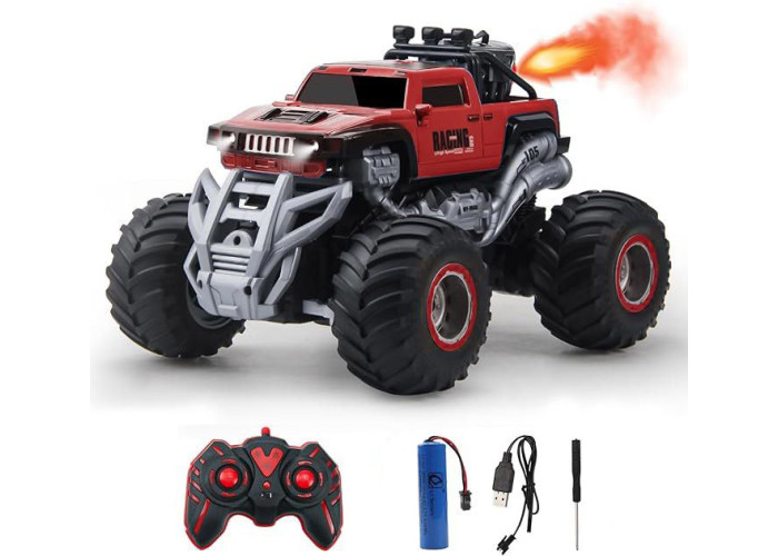 Багатофункціональний автомобіль на дистанційному управлінні. Ця машинка на дистанційному управлінні в масштабі 1:16, зі світлодіодними ліхтарями, музикою та парогенератором, може керуватися повністю за допомогою пульта дистанційного керування. Радіус дії пульта дистанційного керування становить 40-50 метрів, залежно від навколишнього середовища (відкриті ділянки = більші відстані). Пульт дистанційного керування з частотою 2,4 ГГц дозволяє одночасно грати кільком гравцям без перешкод для сигналу.