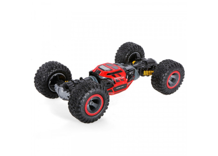 Двосторонній хід, перевертається. Унікальна функція для підняття шасі і подолання всіх видів перешкод. Великий потужний автомобіль з високою швидкістю і приголомшливою здатністю до скелелазіння. 4-Wheel-Drive з незалежної амортизаційною системою підвіски, більш стабільною і швидкою. Потужність передавача 2,4 ГГц забезпечує потужний захист від перешкод. Високопродуктивна приводна система зі швидкістю до 10 км / ч. Виготовлений з високоякісного пластику та гуми. З унікальним зовнішнім видом.