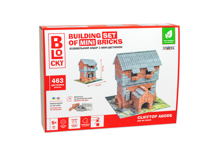 - Комплектація: коробка, цеглинки - 463 ел., клей ПВА, пензлик - 1 шт., комплект додаткових елементів - 1 шт., інструкція.