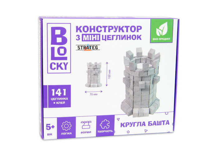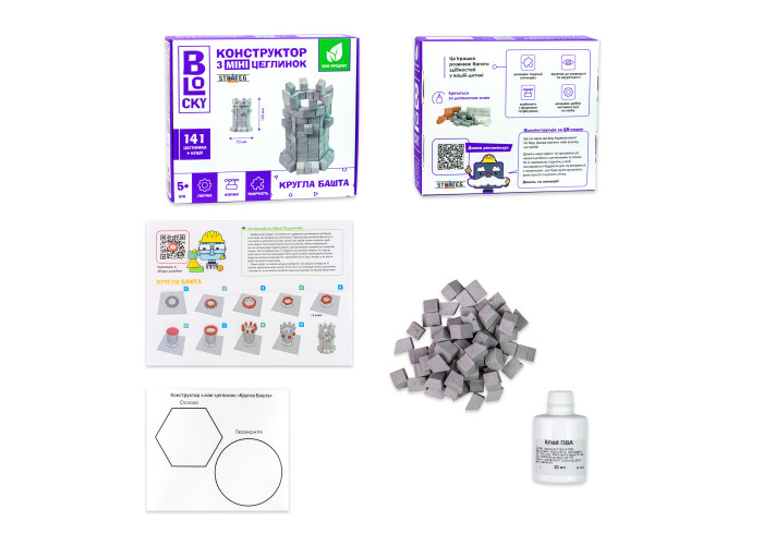 - Комплектація: коробка, цеглинки - 141 ел., клей ПВА, комплект додаткових елементів - 1 шт., інструкція.