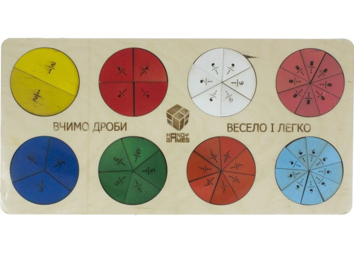 Дроби від виробника дерев'яних пазлів Handy Games - це невід'ємна частина навчального процесу для школярів! Гра з дробами підготує дитину до вивчення такої важливої науки як математика, а також сприятиме розвитоку дрібної моторики рук, координації рухів, концентрації уваги, зорової пам'пам'яті. А ще пазл оригінальний і буде хорошим подарунком на будь-яке свято!