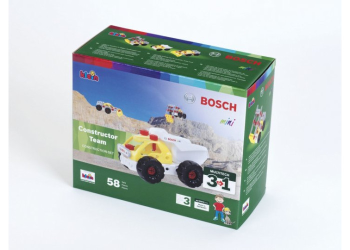 Набір для конструювання машин Klein Bosch 3 in 1 — конструктор за допомогою якого можна скласти 3 транспортних засобів. Використовуючи детальній інструкції, дитина складе будівельну машину самостійно. Важить набір 0.64 кг.