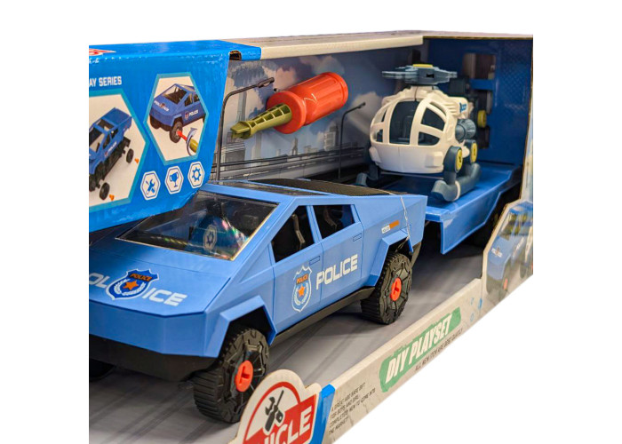 Дуже захоплюючий набір до якого входять вантажівка Тесла Кібертрак, причіп та гелікоптер, які стилізовані під Кібертрак.