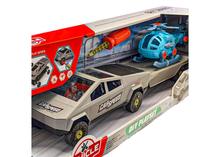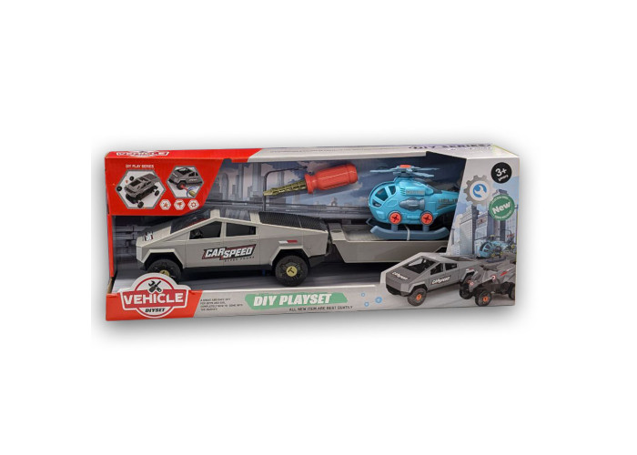 з транспортом розбір (на шурупах, викрутка), маш з прич 53см, вертоліт15,5см,сіра