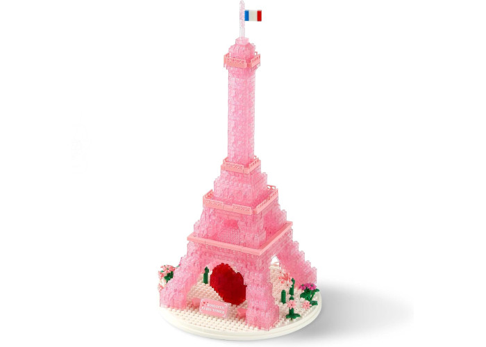 Ця рожева Ейфелева вежа складається із напівпрозорих будівельних блоків, а завдяки світлодіодному освітленню загальний дизайн дуже зачаровуючий. Вежа повністю напівпрозора, а внизу є червоне серце, що символізує кохання.