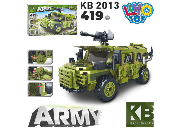 Конструктор Limo Toy Army Kіds Bricks військова техніка 419 ел (KB2013) – популярна дитяча іграшка з категорії Дитячі конструктори, яка подарує багато радості та позитивних емоцій дитині. М’які іграшки допомагають розвивати уяву, емоційність та створюють відчуття затишку. Вони стають улюбленими друзями малюків та чудово підходять для гри і відпочинку. Переваги іграшки: • м’які та приємні матеріали • безпечний наповнювач • підходить для дітей різного віку • чудова ідея для подарунка Замовляйте Конструктор Limo Toy Army Kіds Bricks військова техніка 419 ел (KB2013) у магазині Green Farm з доставкою по всій Україні.Характеристики