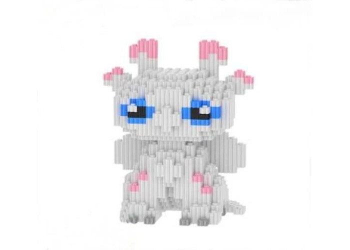 Конструктор Magic Blocks призначений для збирання об'ємної фігурки дракона «Денна Фурія» із стрижневих елементів. Деталі з'єднуються вертикальним способом і утворюють стійку модель з блакитними очима, рожевими акцентами та невеликими крилами. Готова фігурка підходить для декоративного розміщення.