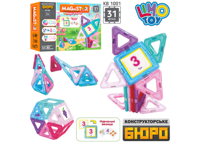 Представляємо Вашій увазі нову розробку – Магнітний конструктор! Особливість такого конструктора полягає в тому, що деталі кріпляться одна з одною за допомогою магнітів, поміщених у пластиковий корпус.